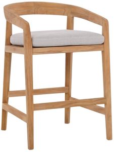 Modern counter stool designed in full teak, with sloping armrests and footrest. The Raleigh counter stool's scooped seat and removable cushion bring curated comfort to counter-height dining. Fits well in a variety of settings.Read More