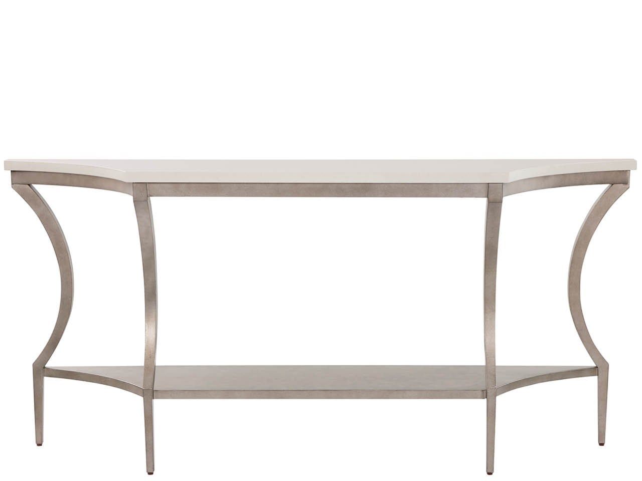 The Birchaven Console is an impressive accent for any hallway or living room, featuring a long, narrow top made of cool, luminous White Quartz stone. The neoclassical-inspired frame is rendered in the subtle Aged Pewter metal finish, balancing strength with exceptional elegance.