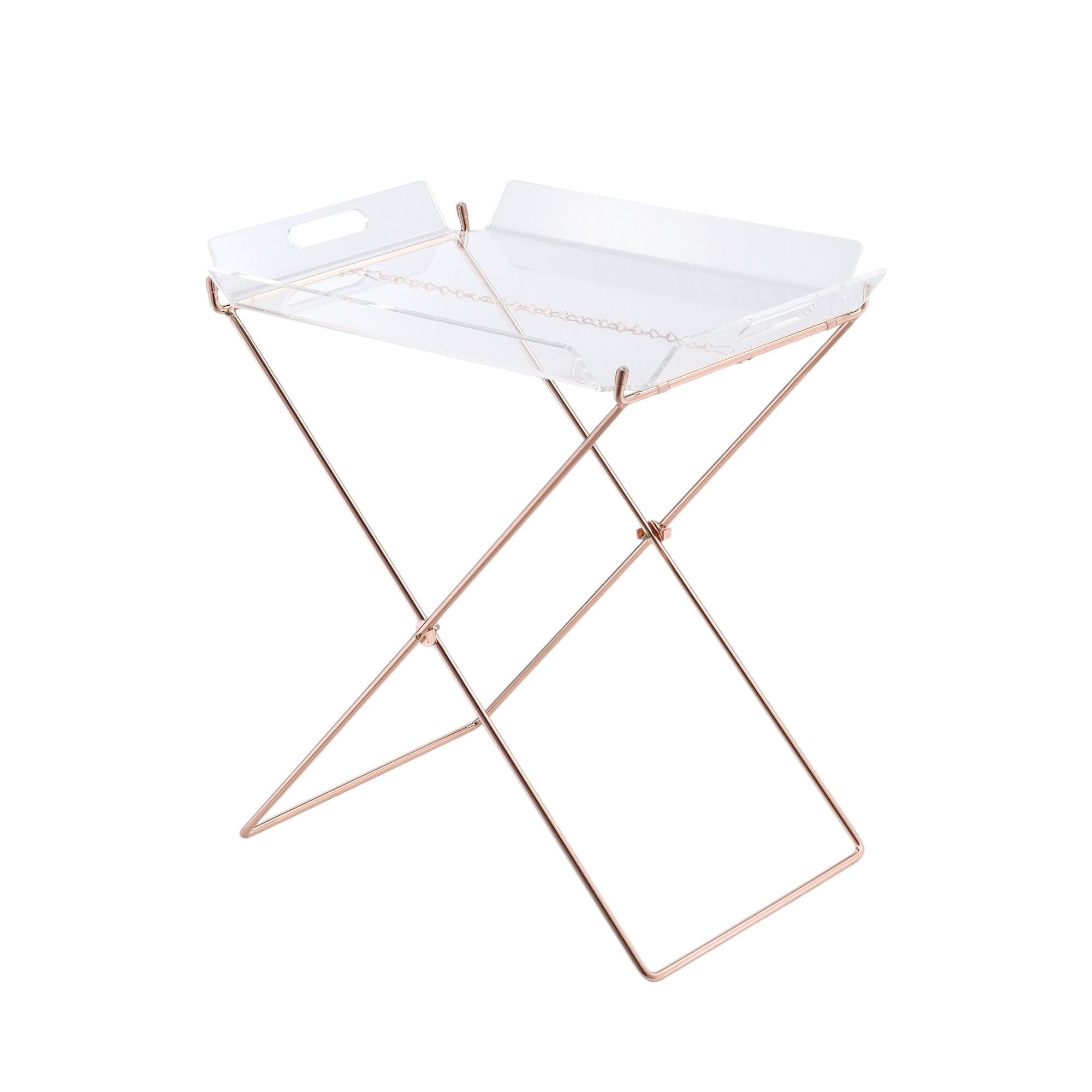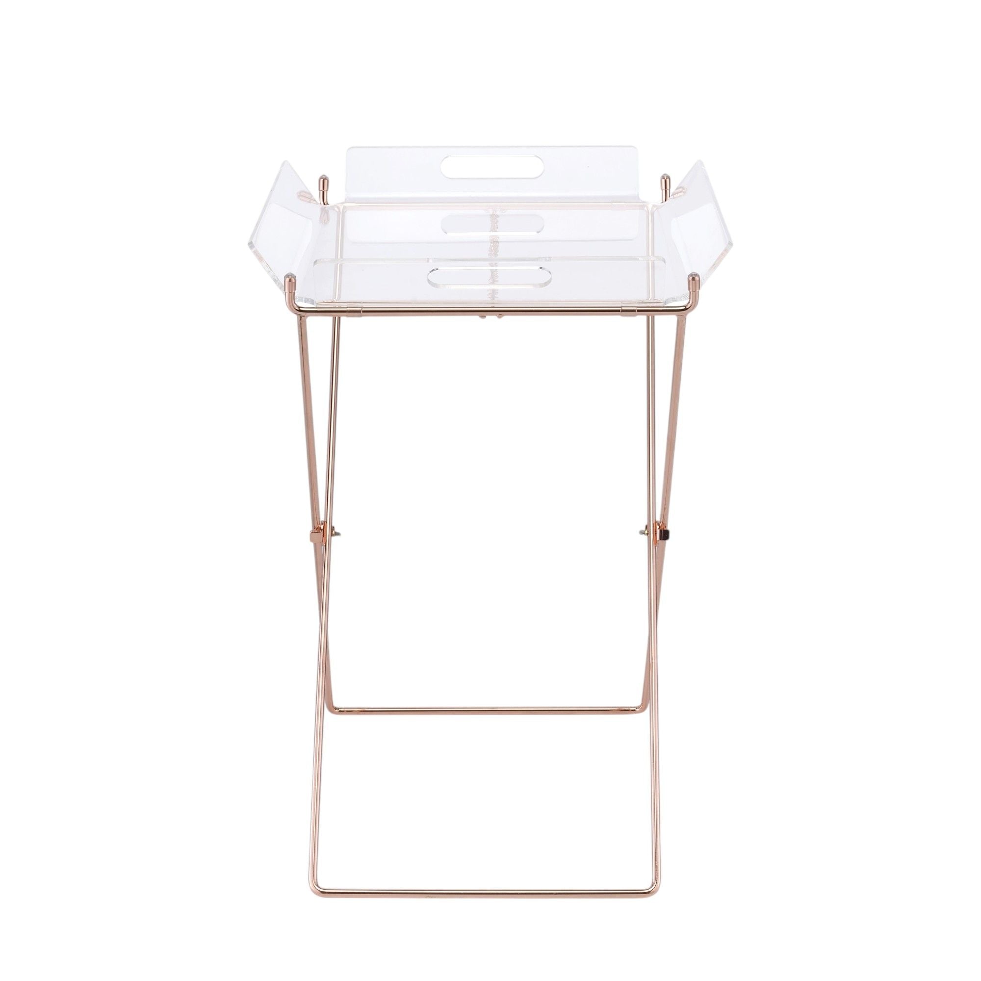 - Copper Finish Accents: Adds warm metallic contrast to the transparent surface