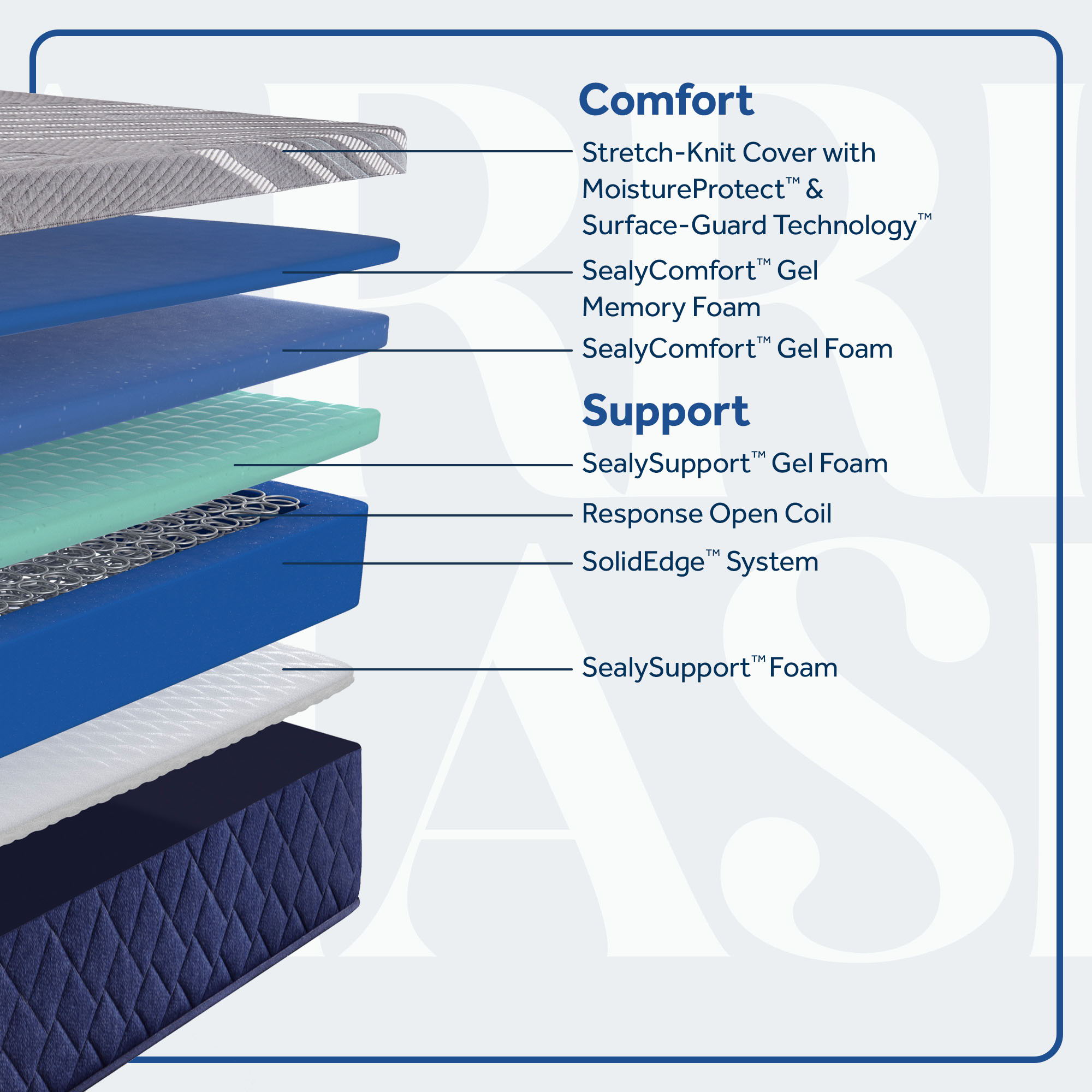 The 12" Carrington Chase by Sealy foam mattress features our SealySupport™ and SealyComfort™ Gel Foams with an added layer of SealyComfort™ Gel Memory Foam for extra cooling and conformance. A moisture-wicking, antibacterial cover helps keep the mattress protected, and the mattress comes conveniently compressed in a shippable box.